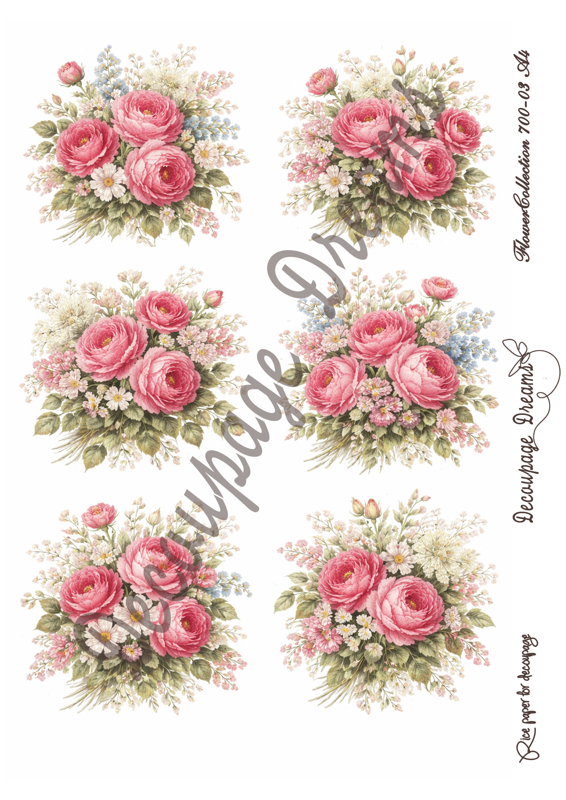 Ριζόχαρτο ντεκουπάζ Α4 ρομαντικά μπουκέτα ροζ τριαντάφυλλα (21×29,7cm) Decoupage Dreams – 700-03